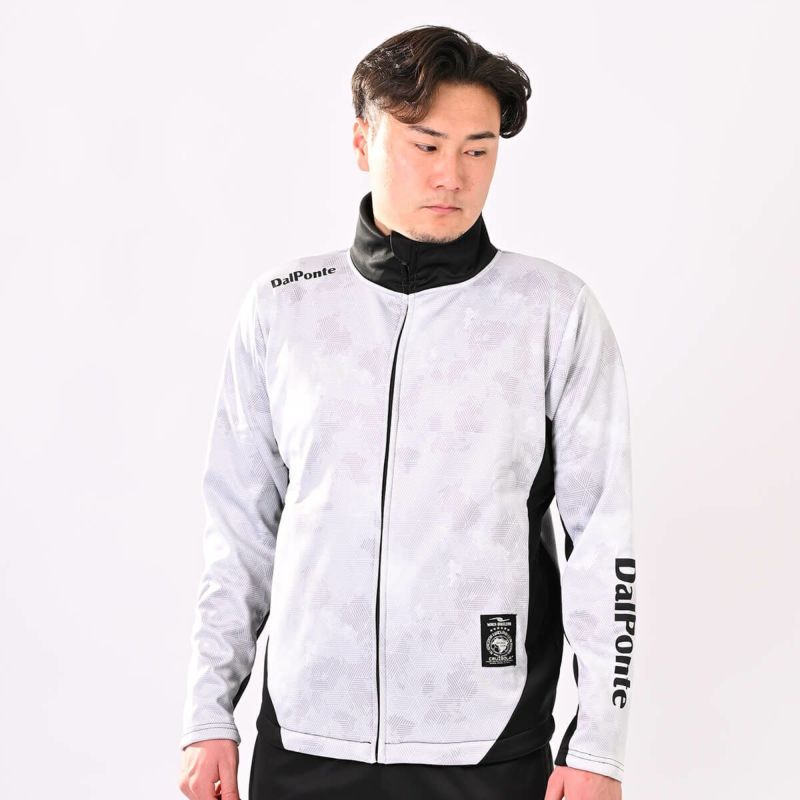極暖トレーニングジャージジップスタンドカラーWHITExGRAY