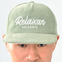 リラクシャーのロゴ刺繍を施したコーデュロイキャップ