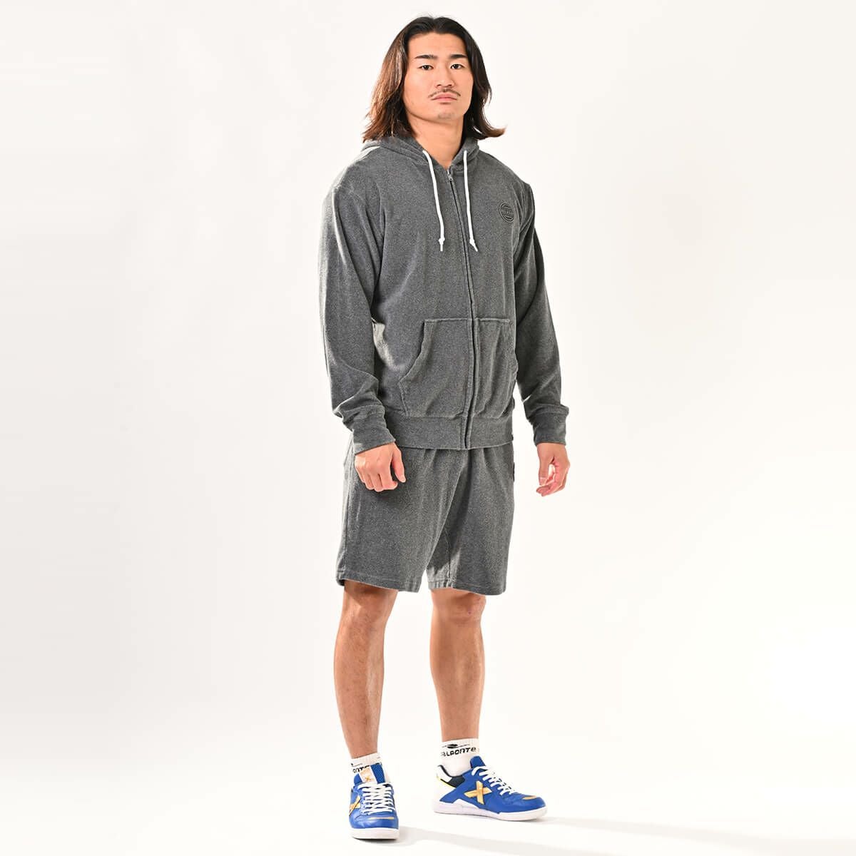 パイルスウェットパーカー+パイルスウェットハーフパンツ上下セットC.GRAY+C.GRAY