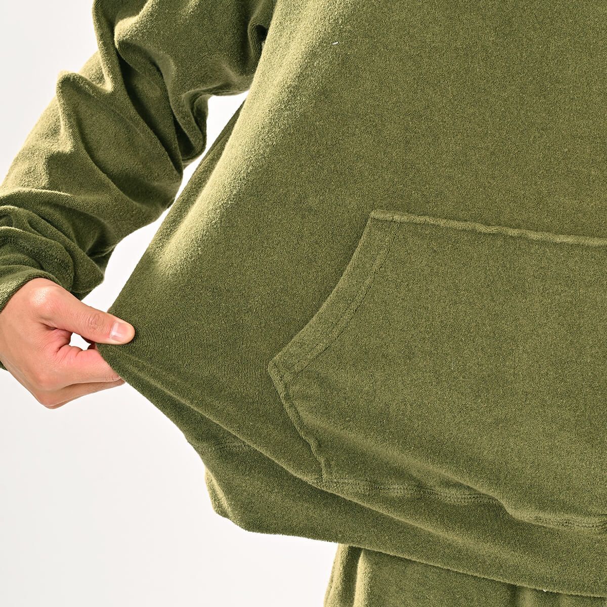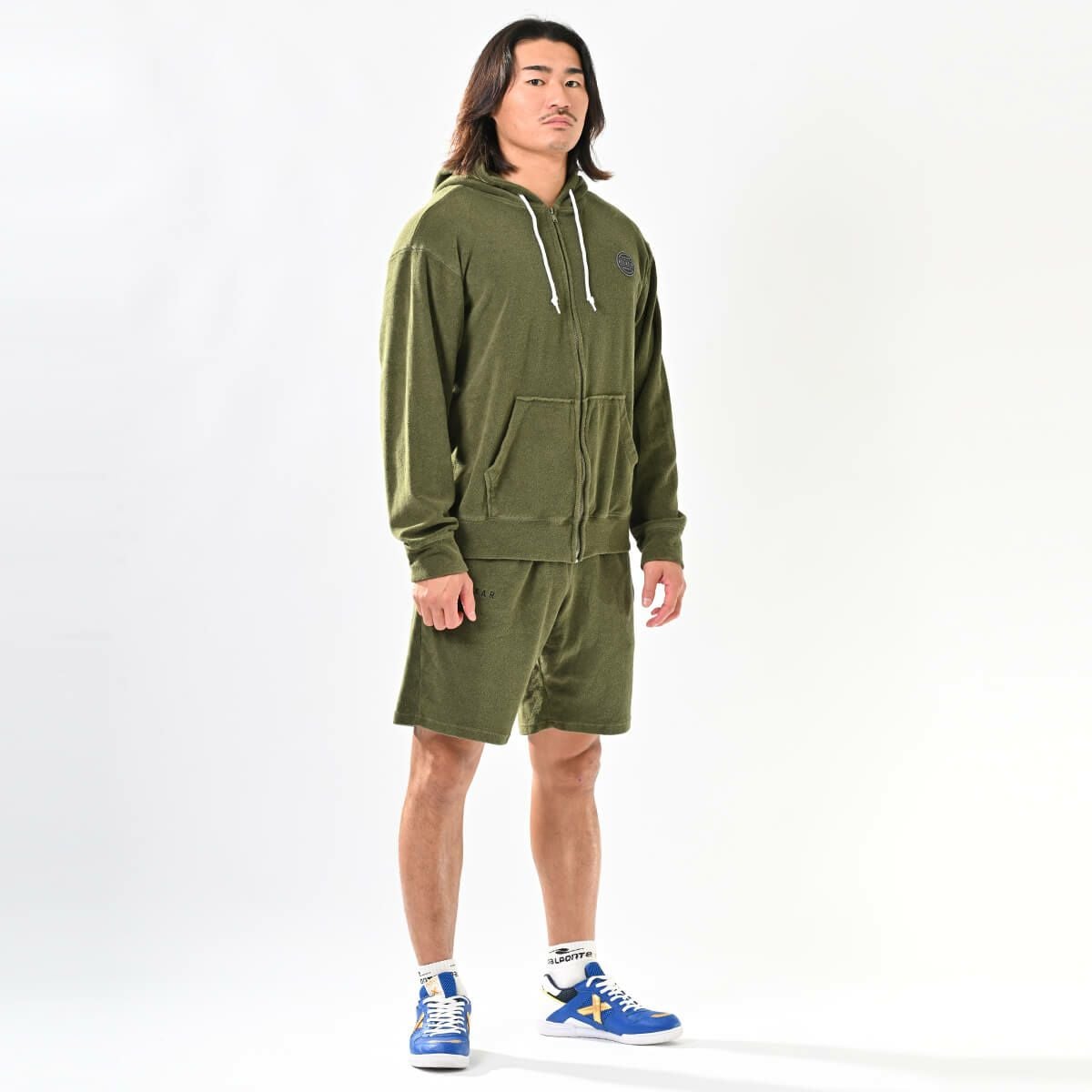 パイルスウェットパーカー+パイルスウェットハーフパンツ上下セットOLIVE+OLIVE