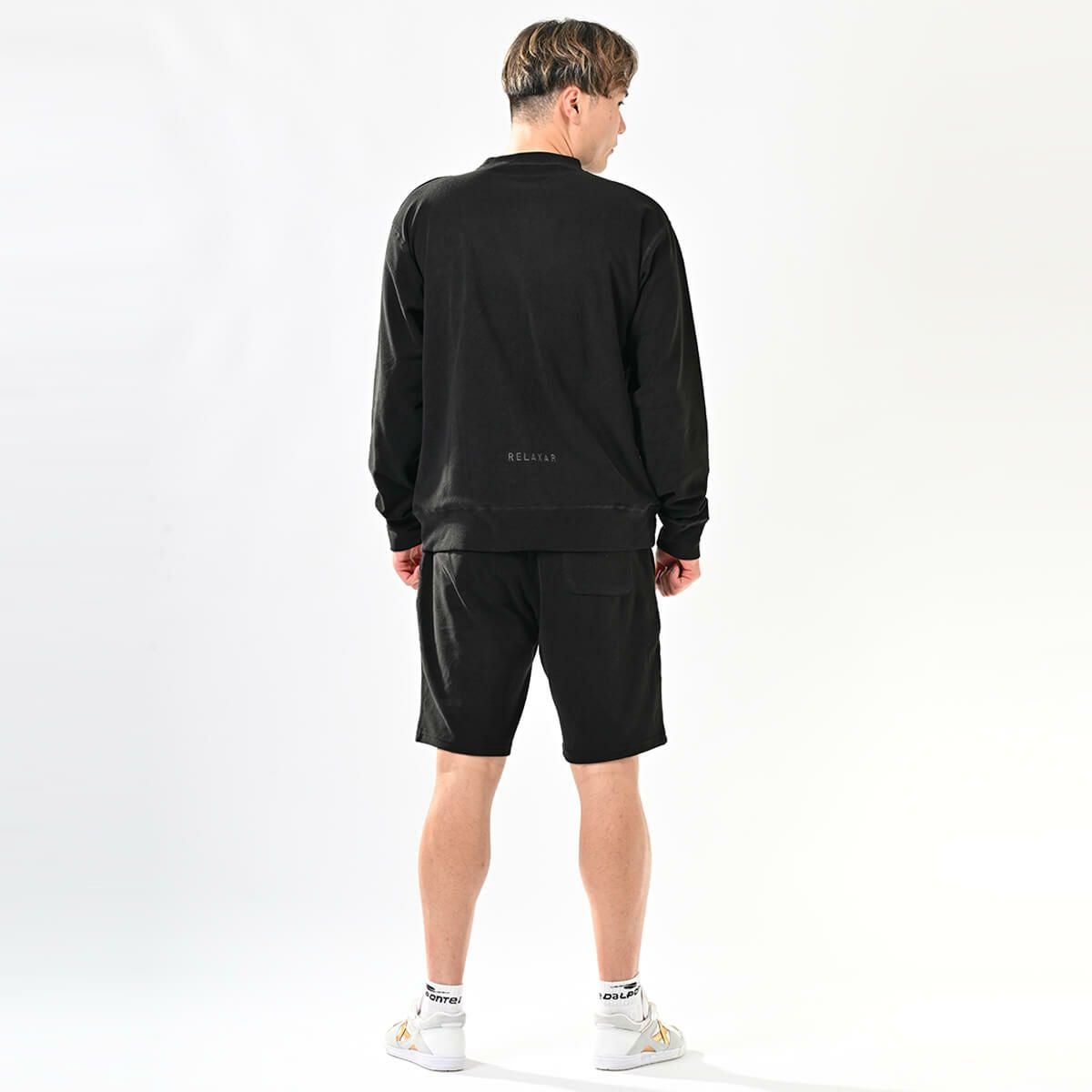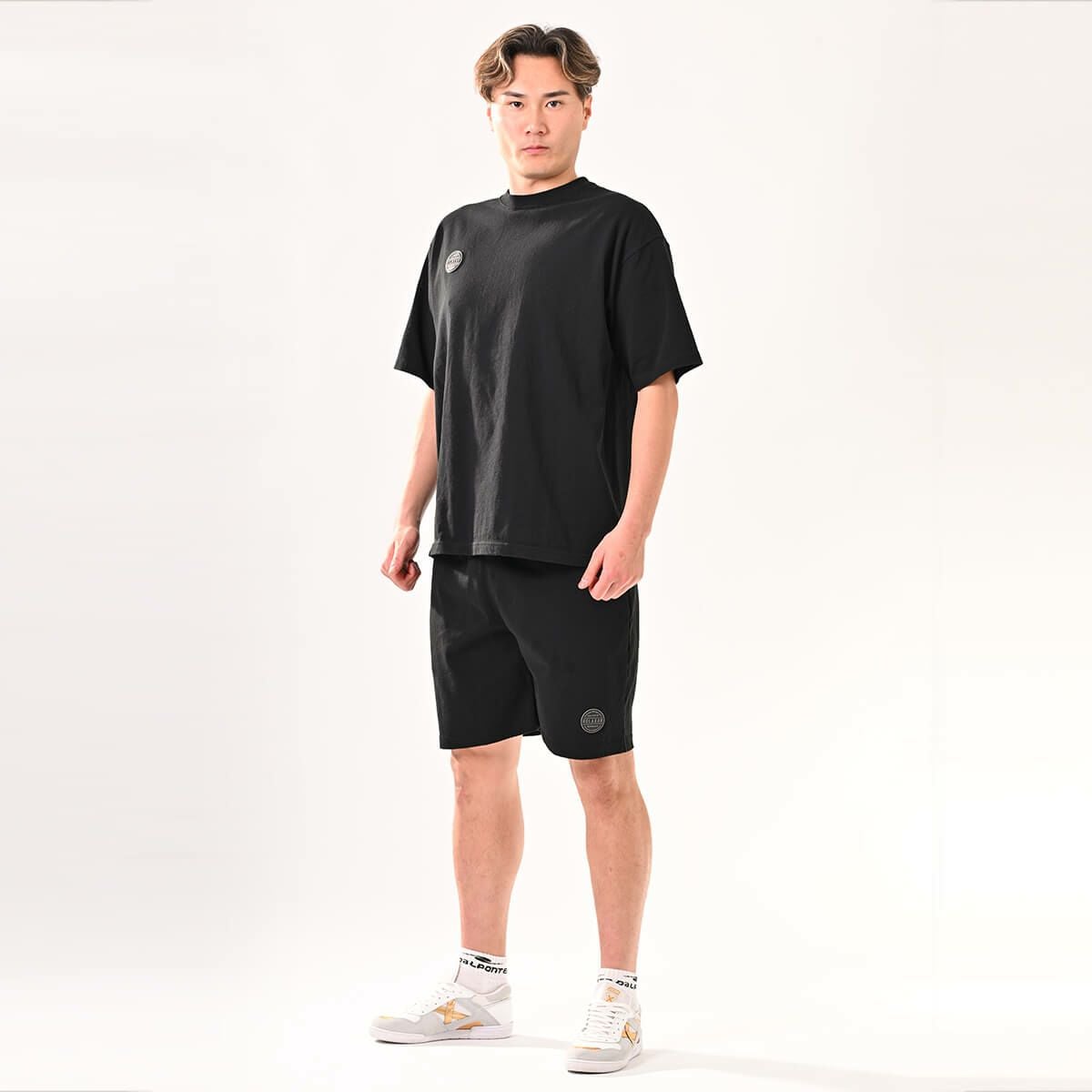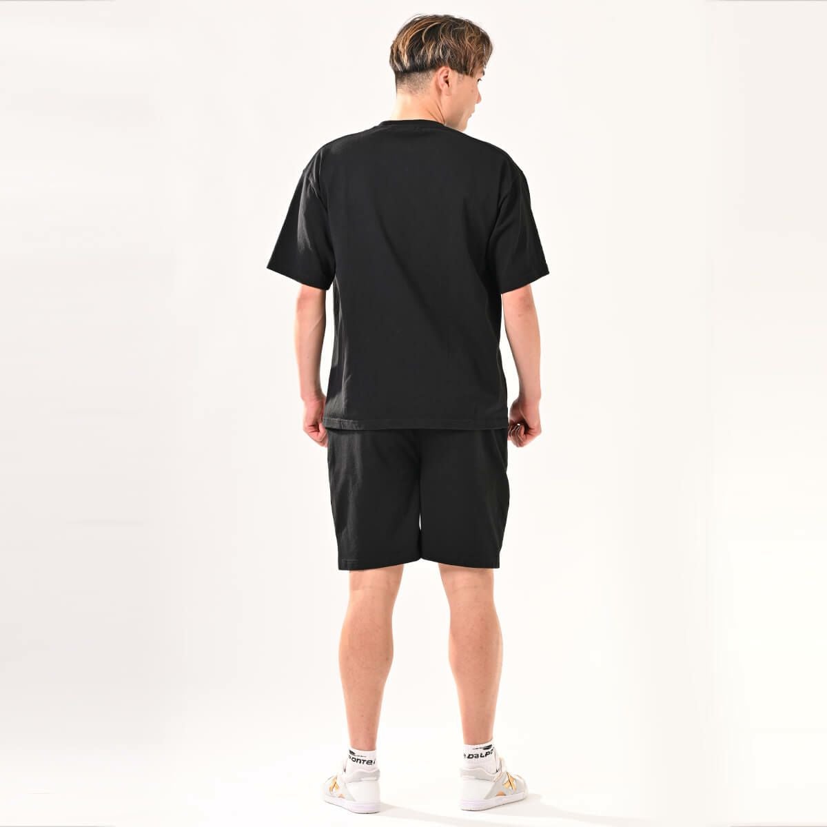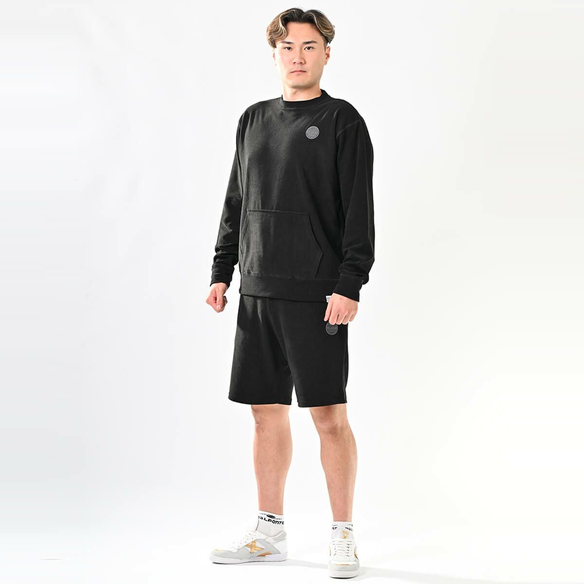 パイルスウェットトップ+パイルスウェットハーフパンツ上下セットBLACK+BLACK