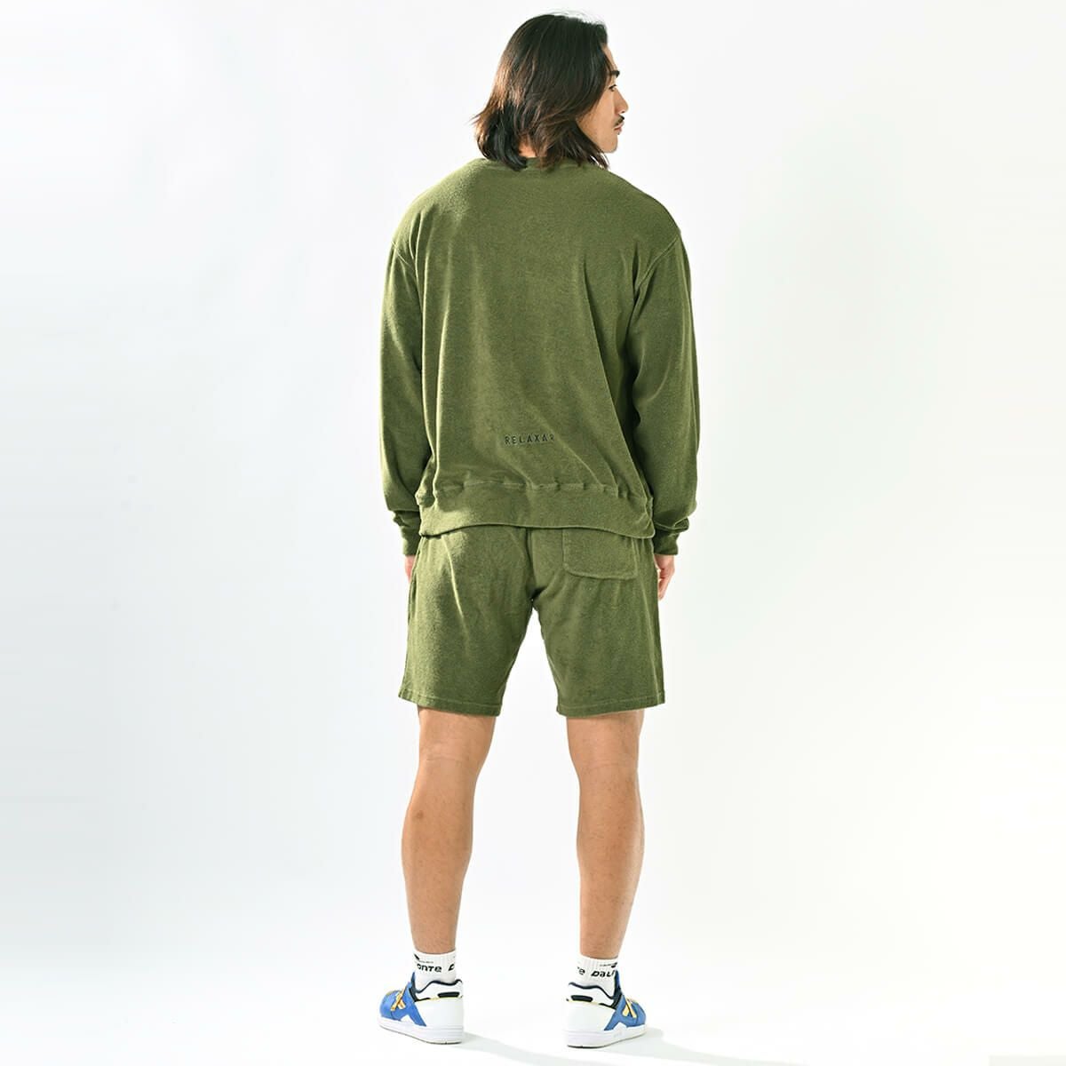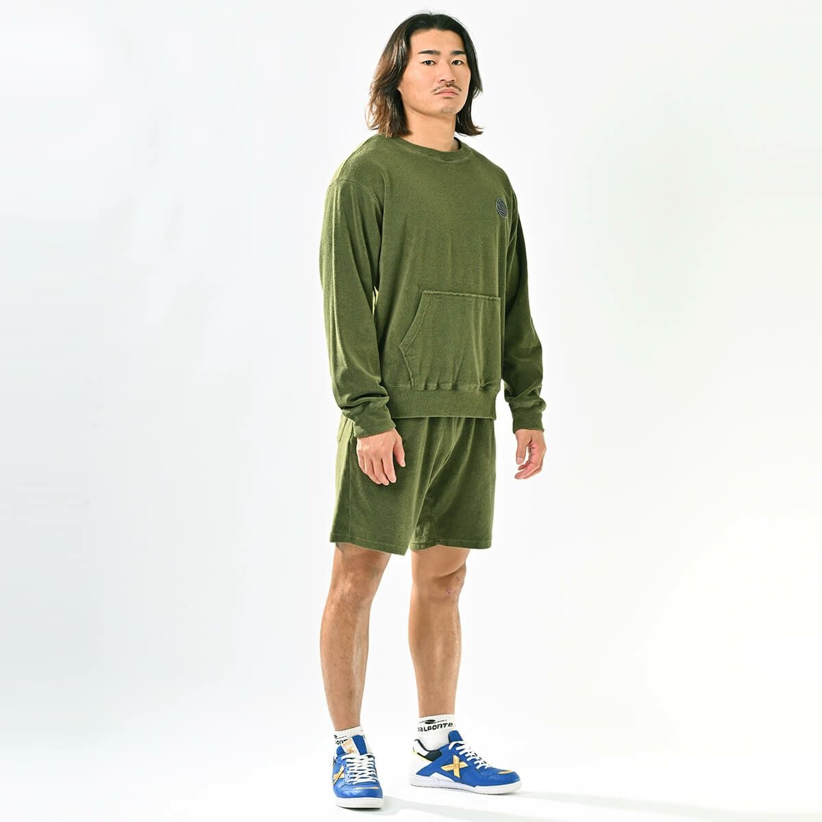パイルスウェットトップ+パイルスウェットハーフパンツ上下セットOLIVE+OLIVE
