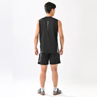 肌触りが良く通気性に優れ、高い吸汗速乾機能を持つパウダーメッシュ素材を使用してトレーニングに最適なノースリーブプラクティスシャツとパンツ上下セット