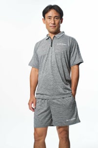 肌触りが良く通気性に優れ、高い吸汗速乾機能を持つパウダーメッシュ素材を使用したジップポロシャツ