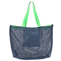 夏らしいメッシュ素材のトートバッグ 内側には小物が収納できる吊りポケット付き。 袋口ドットボタン付きなので、中身が飛び出しにく安心です。