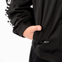 メインの布帛×脇のストレッチ素材のウィンドブレーカー。裏地にはメッシュ生地を採用。脇のストレッチ生地が動きのストレスを軽減。 チーム対応継続商品。