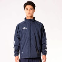 メインの布帛×脇のストレッチ素材のウィンドブレーカー。裏地にはメッシュ生地を採用。脇のストレッチ生地が動きのストレスを軽減。 チーム対応継続商品。