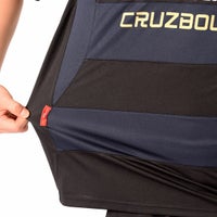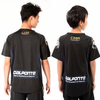 シャツ前面にボーダーをあしらったインパクトあるデザイン。チーム対応継続商品。速乾性素材。
