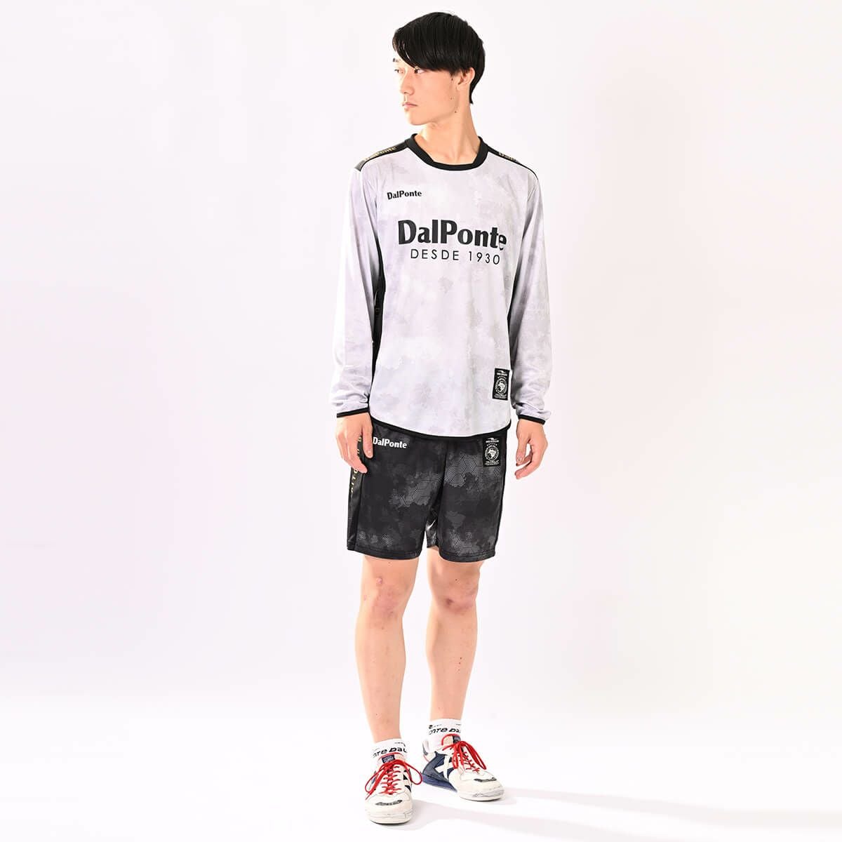 昇華長袖プラクティスシャツ上下セットWHITExGRAY+BLACKxGRAY