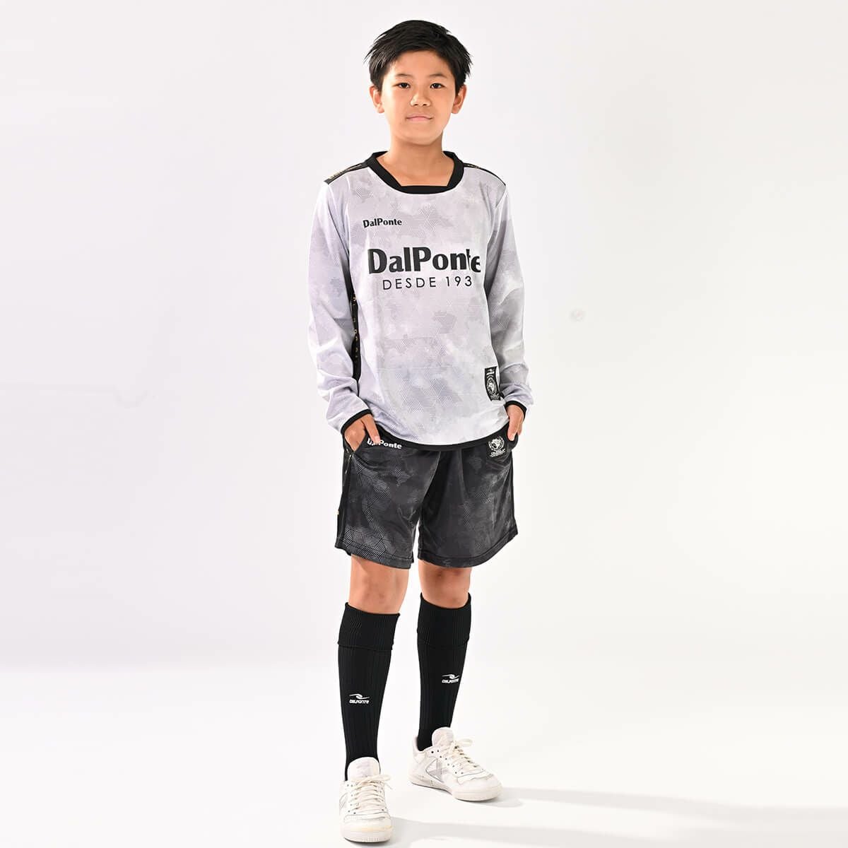 【ジュニア】昇華長袖プラクティスシャツ上下セットWHITExGRAY+BLACKxGRAY