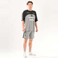 肌触りが良く通気性に優れ、高い吸汗速乾機能を持つパウダーメッシュ素材を使用した、ゆったりとしたシルエットのプラクティススーツ